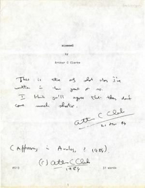 Avete mai letto una storia di fantascienza lunga solo 31 parole? L’ha scritta Arthur C. Clarke (sì, il papà di 2001: Odissea nello Spazio) nel 1984, dopo un decennio in cui si era dedicato solo ai romanzi. Si intitola siseneG (Genesis al contrario) e in poche righe trasforma la creazione divina in un codice informatico.